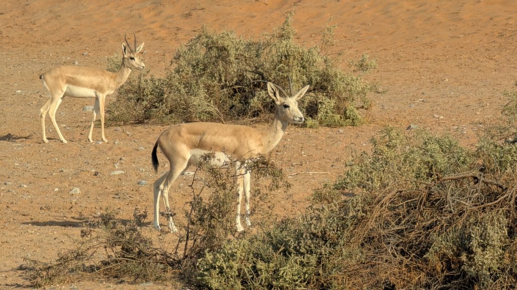 Wir sind durch das Al Hajar Gebirge gefahren, dass sich von Ras Al Khaima bis zur Musadam-Halbinsel im Norden des Oman erstreckt. Vor uns der riesige Jebel Jais, der mit 1.932 Metern der höchste Berg der Vereinigten Arabischen Emirate ist. Das Hajar Gebirge ist schroff, trocken und karg. Es sind kaum Pflanzen zu sehen, aber immer wieder tauchen Oasen auf, mit Dattelpalmen, grün und lebendig, sie wirken fast fremd in dieser schroffen Landschaft.